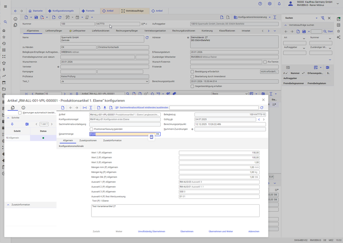Auch die Benutzerfreundlichkeit wurde weiter verbessert, beispielsweise durch erweiterte Möglichkeiten zur Bearbeitung und Formatierung von Langtexten in der Produktkonfiguration, strukturelle Verbesserungen in der Produktkalkulation sowie zusätzliche Informationen für eine korrekte buchhalterische Verarbeitung in produktionsnahen Anwendungen.