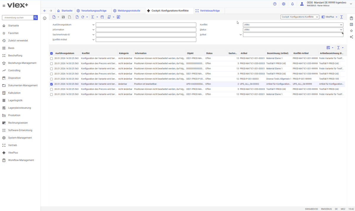 Mit der neuen Versionierung von Konfigurationen setzt VlexPlus ERP einen weiteren Meilenstein in Sachen Datensicherheit und Prozessstabilität. Die Funktion ist ab dem Release 6.5 systemweit verfügbar und greift über alle Module und Abteilungen hinweg. Alle relevanten Formeln, Regeln und Merkmale werden zu einem klar definierten Zeitpunkt eindeutig bewertet und festgeschrieben. Spätere Änderungen an diesen Konfigurationsstammdaten beeinflussen bereits erstellte Konfigurationen nicht mehr – das schafft Transparenz, schützt vor ungewollten Abweichungen und erhöht das Vertrauen in die Daten nachhaltig. Anwender profitieren so von einer verlässlichen und nachvollziehbaren Nutzung der Daten über den gesamten Prozess hinweg.